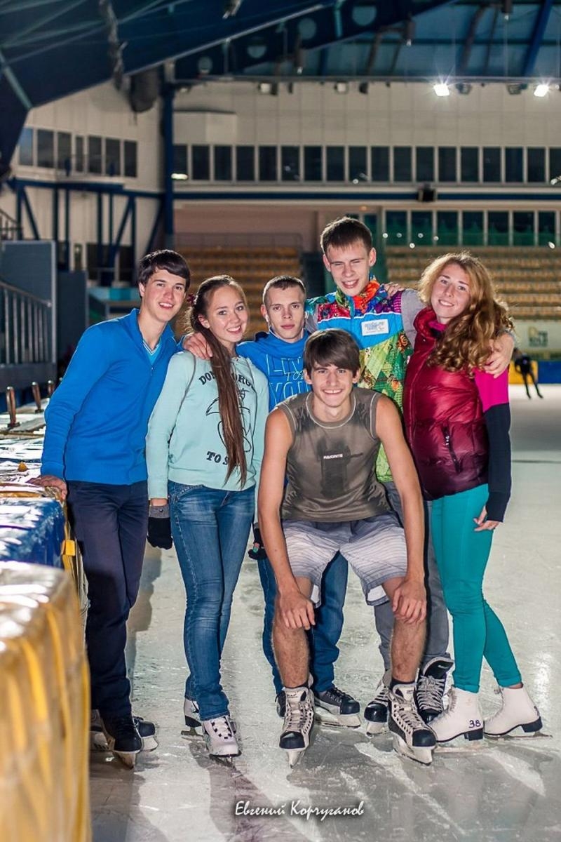 Начинающему фигуристу избежать падений все равно не получится, так что лучше научитесь делать это правильно. Если вы падаете вперед, то приземлиться нужно на всю наружную часть колена и бедра. При этом страховать себя нужно и руками, а точнее — кистями согнутых, пружинящих, но не очень напряженных рук. Ни в коем случае не подставляйте под удар плечо, оно «утянет» за собой голову, и «лобового столкновения» со льдом не избежать. Помните, что голова должна резко откинуться назад.