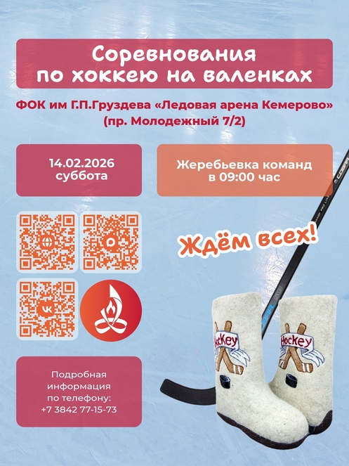 Друзья, 14 февраля на территории хоккейной коробки, находящейся на прилегающей территории ФОК «Ледовая арена Кемерово» (пр. Молодежный 7/2), состоится захватывающее спортивное событие – соревнования по хоккею на валенках!🏒🏒🏒🏒