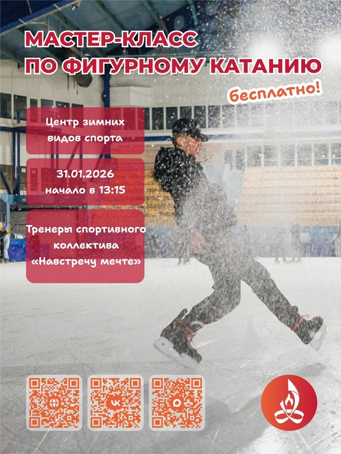 ✨Приглашаем вас на бесплатный мастер-класс по фигурному катанию, который состоится 31 января 2026 на ледовой арене Центра зимних видов спорта (Калинина, 4, закрытый модуль, расположенный рядом с открытым стадионом Химик) в рамках часового сеанса 13:00-14:00 час.