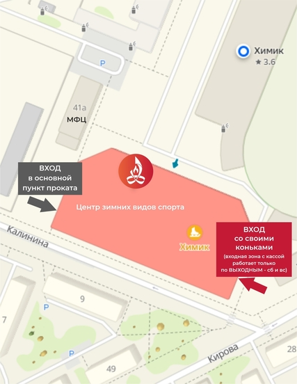 Мы открываем отдельный вход в Центре зимних видов спорта (Калинина, 4) для посетителей массовых катаний со своими коньками.