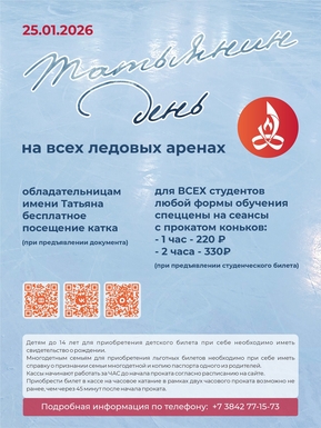 25 января - «Татьянин день» на наших ледовых аренах с бонусами для «тех самых» Татьян и студентов: