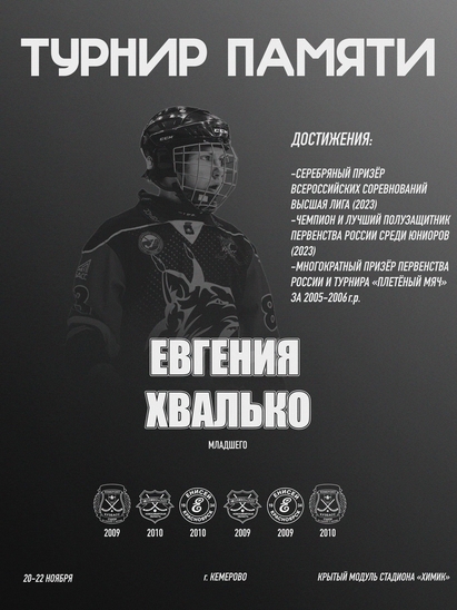 С 20 по 22 ноября в Центр зимних видо спорта (Стадион Химик) состоится турнир памяти Евгения Хвалько-младшего среди команд 2009-2010 г.р.